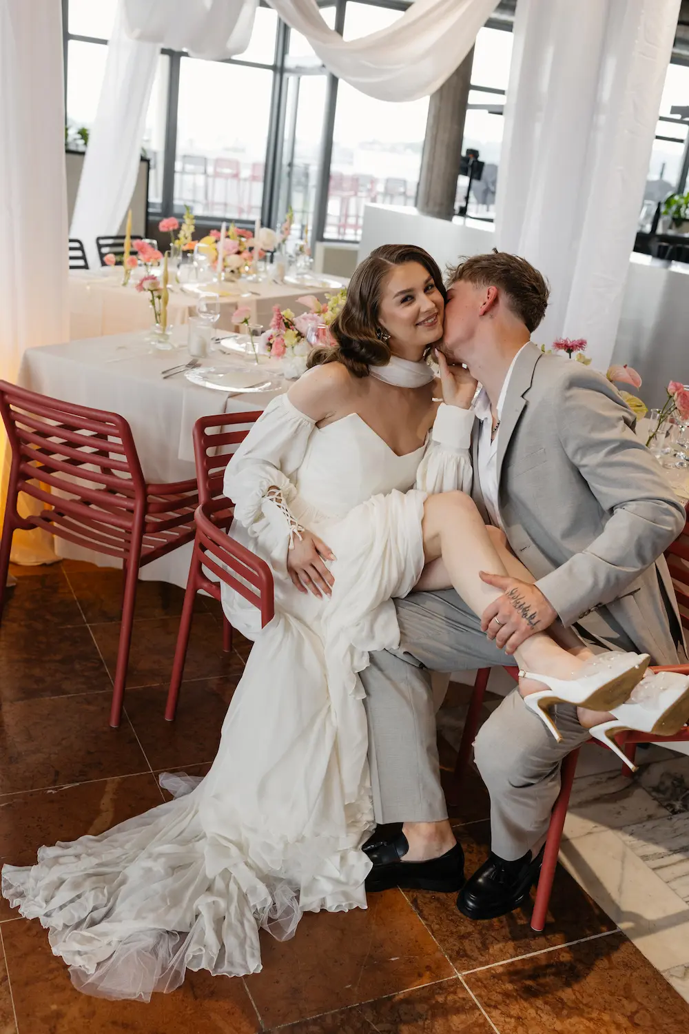 - Sceneria dnia: ślub na tarasie z widokiem, otwierający się na panoramę miasta; dekoracje i aranżacje dopasowane do świeżego, angielskiego vibe’u z nutą boho.