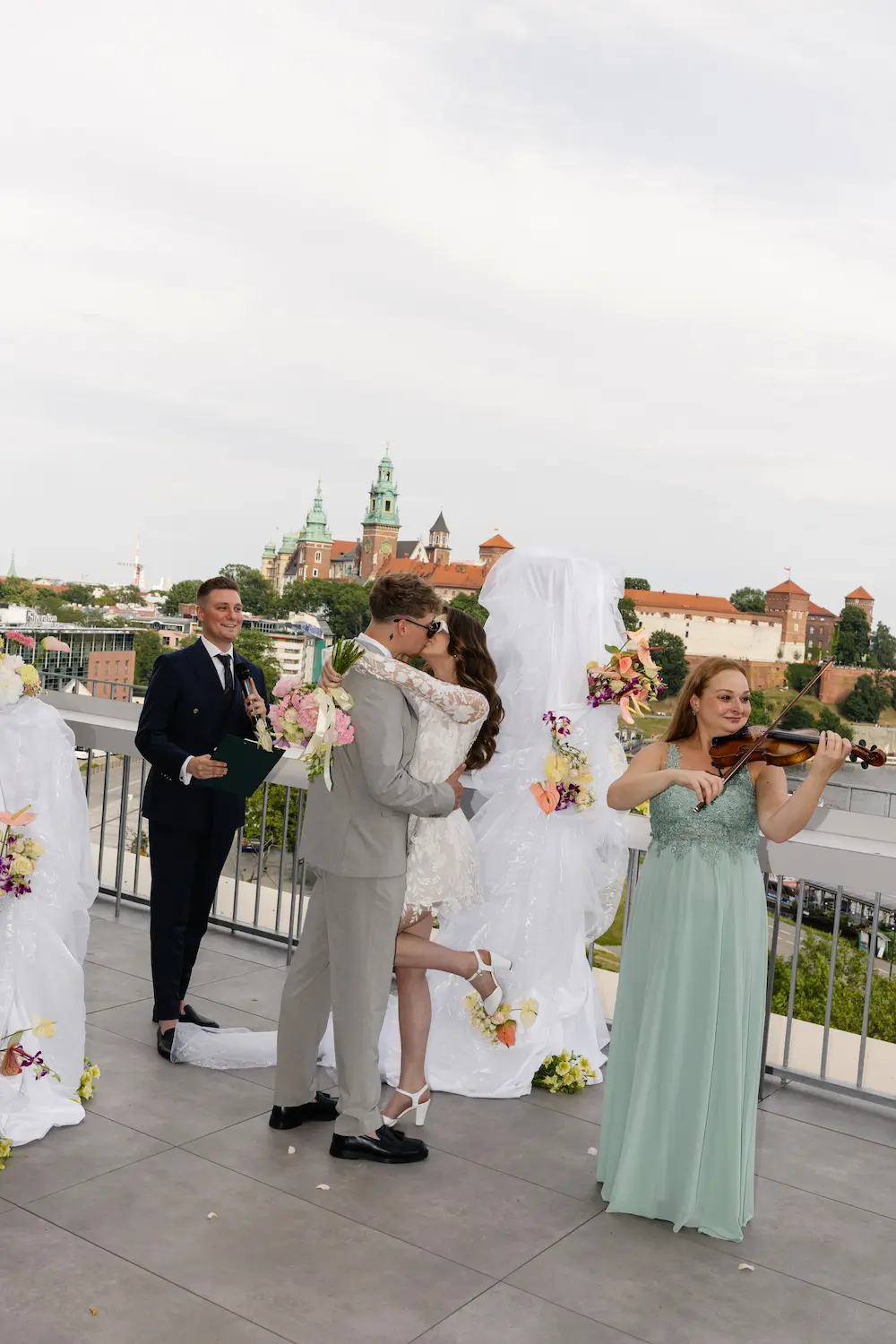 - Ceremonia: miała miejsce na tarasie z widokiem na Wawel, prowadzona w intymnym, rodzinno-przyjaznym tonie.