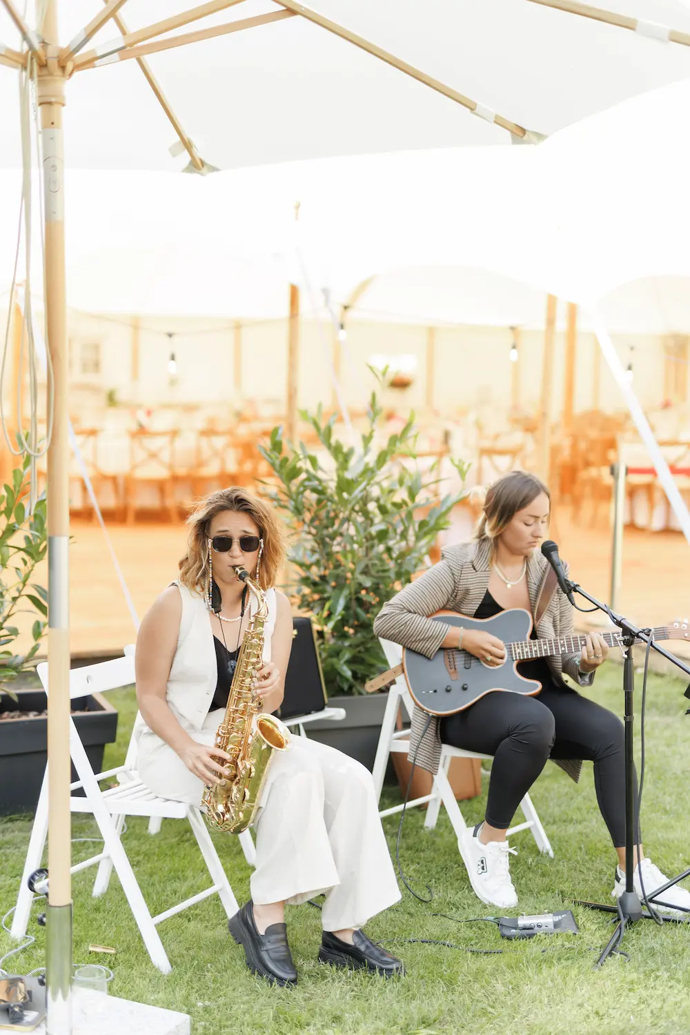 • Muzyka i aperitif: Panowie od muzyki – Filip doskonale poprowadził muzyczną część. Na aperitif zaprosili duet saksofon, gitara i śpiew – atmosfera była niezwykle magiczna, a pierwsze motywy muzyczne wywoływały ciarki.