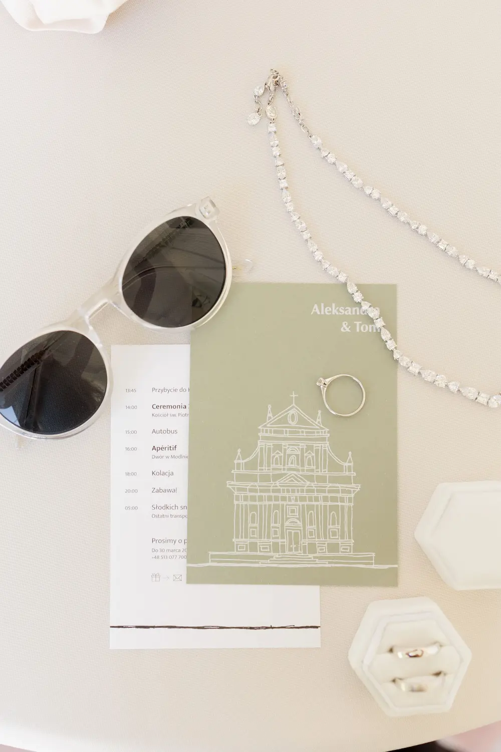 • Motyw i detale: szkic kościoła, który wykonała mama Panny Młodej, stał się wyjątkową ozdobą i pięknym łącznikiem między tradycją a sercem pary.