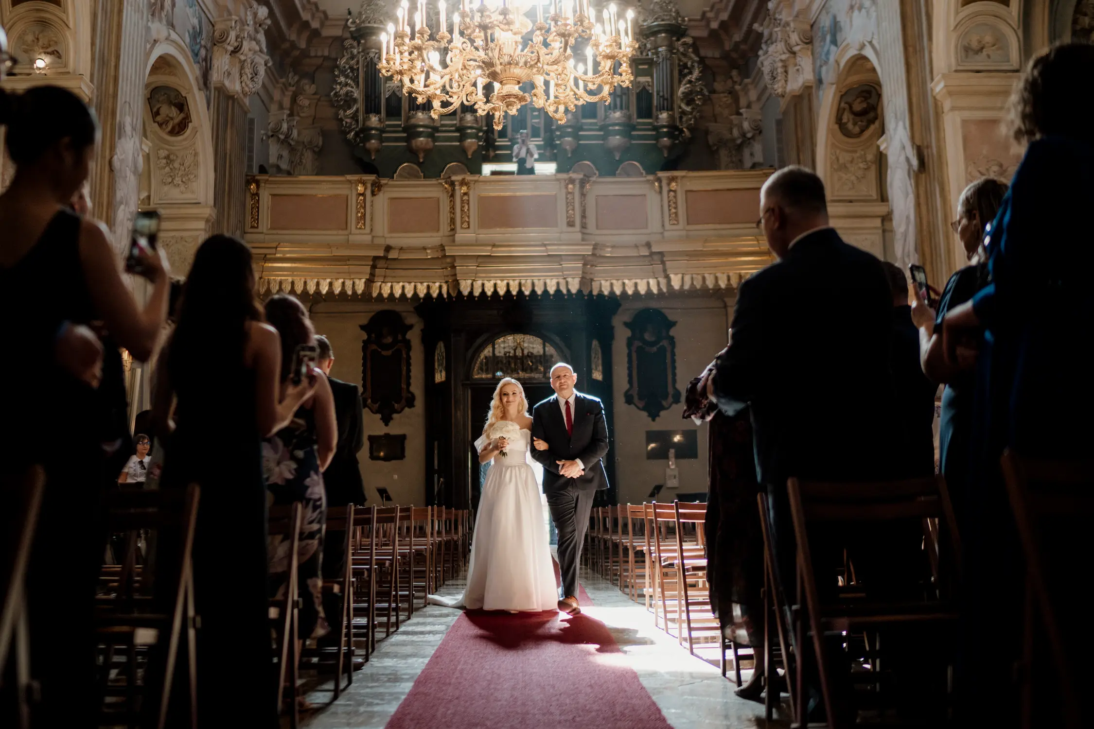 - Pomysł i miejsce: po raz kolejny zaczęliśmy od przygotowań na rynku, przestronny apartament, aby zapewnić parze prywatność i możliwość przygotowań bez widoku na siebie. Ślub odbył się w Kościele Św. Anny — to światło, które prowadziło nas przez cały dzień.