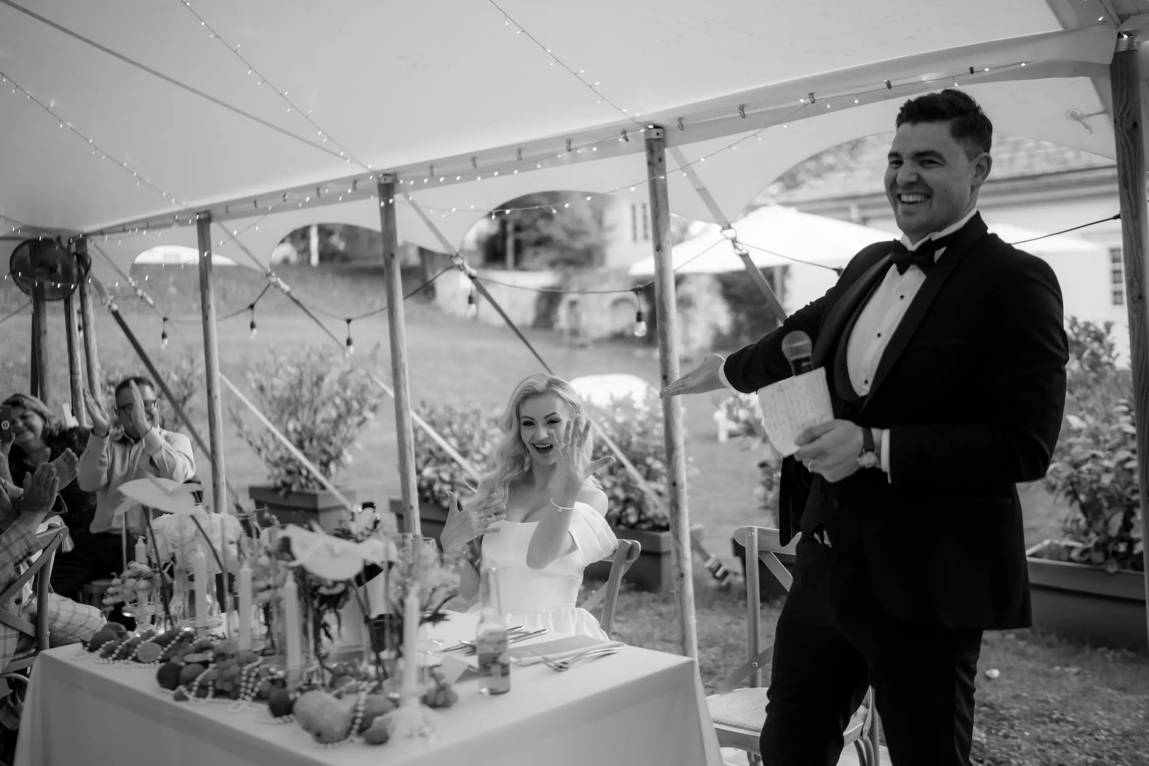 - Lokalizacja wesela: namiot pod Krakowem — proste, eleganckie dekoracje.