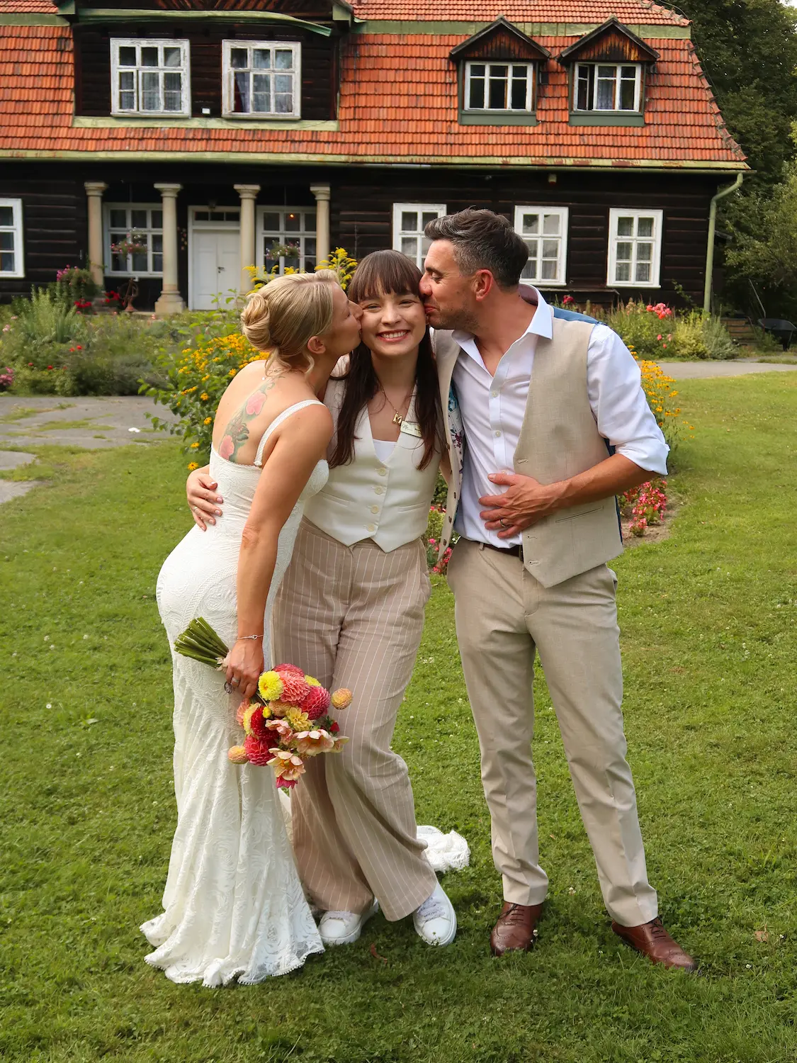 - Prowadzenie: ślub udzielała koleżanka pary, a tłumaczenie zapewniała siostrzenica, co dodało intymności i rodzinnego klimatu.