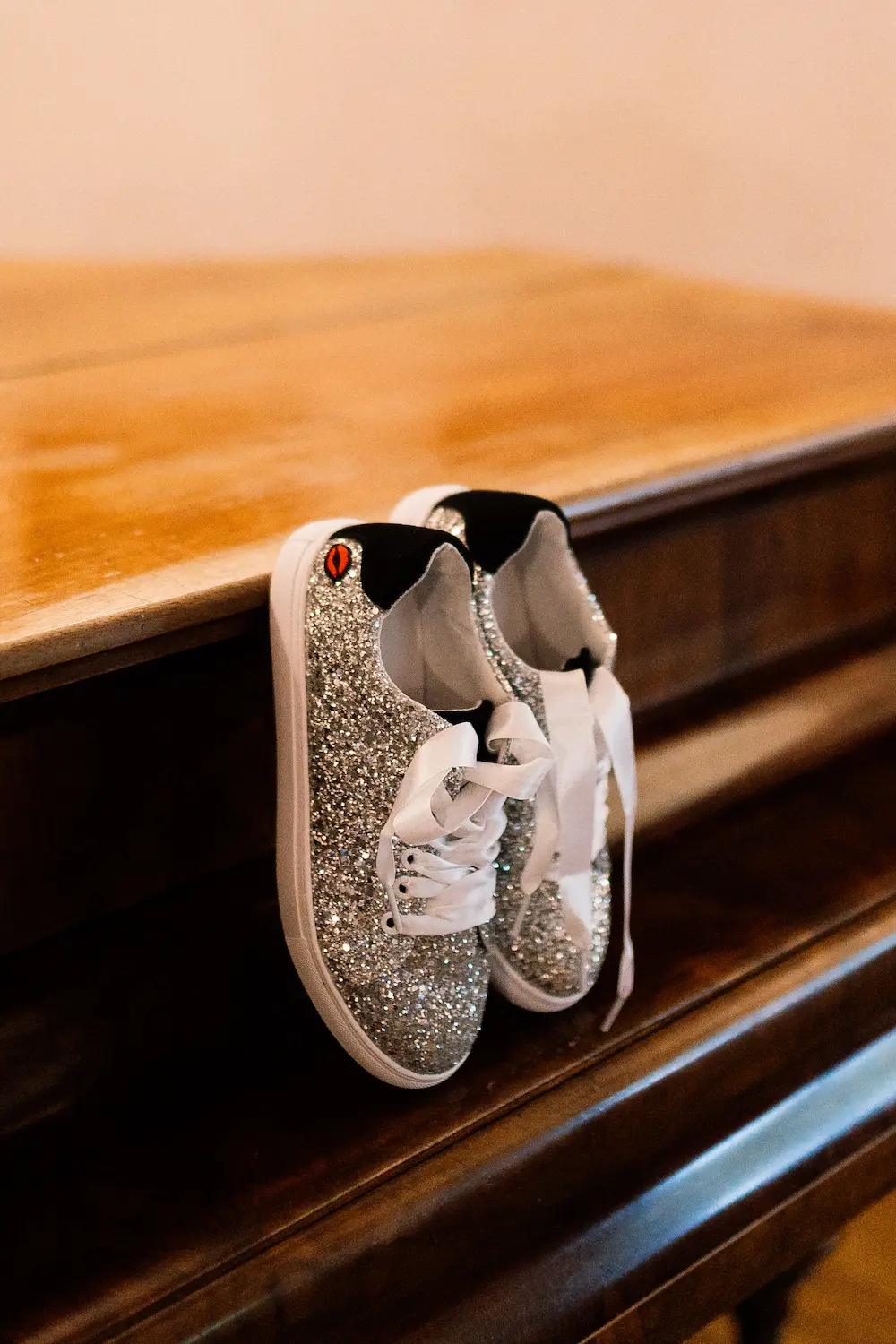- Pan młody i panna młoda postawili na wygodę i swobodę: para zdecydowała się na trampki zamiast tradycyjnych obcasów – top i spódnica panny młodej dopełniały stylizacji z personalizowanymi trampekami. Całość wyglądała lekko i niezwykle charakterystycznie.