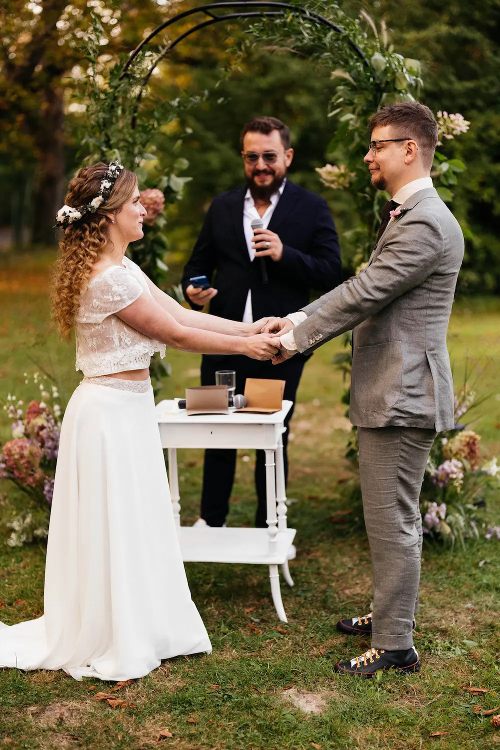 - Ślub poprowadził przyjaciel pary, co nadało wydarzeniu intymny, bliski klimat i autentyczność.