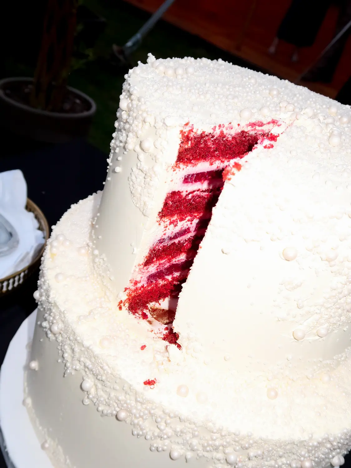 • Tort i słodkości: wybitnym akcentem był tort red velvet o intensywnym, czerwonym kolorze; cały zestaw słodkości i tortu —w całości zapewniał catering byJelonek.